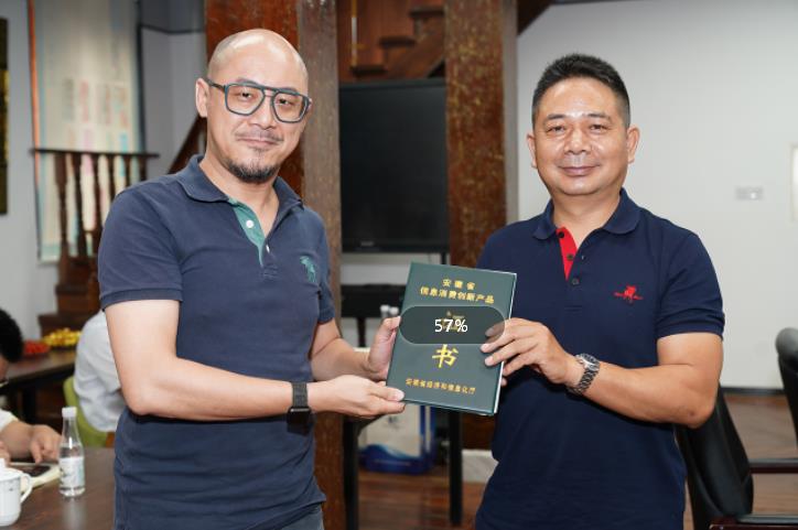 會議開始前,鏡湖區(qū)經信局局長方仲明向企業(yè)授予安徽省第七批信息消費創(chuàng)新產品證書。
