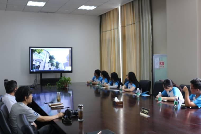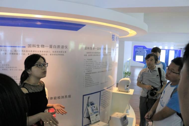 圖為安徽國科生物科技有限公司負(fù)責(zé)人向團(tuán)隊成員及指導(dǎo)老師介紹公司先進(jìn)的科技產(chǎn)品和已經(jīng)取得的成績。通訊員彭文婷攝