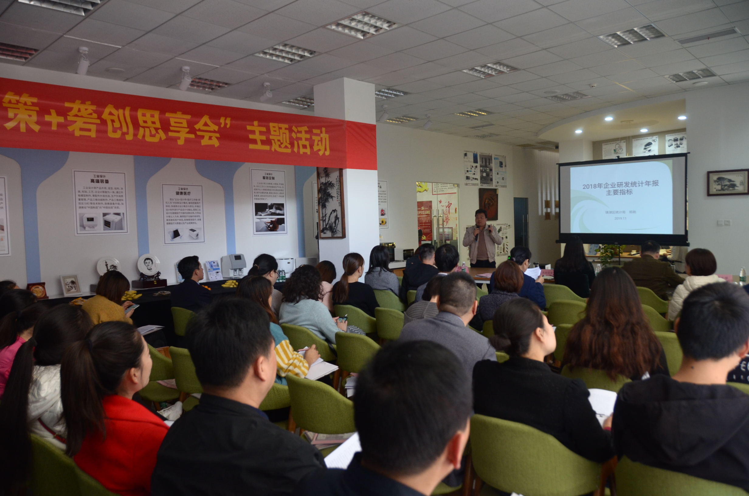本次活動邀請了鏡湖區科技局張勝娟作2019鏡湖區自主創新政策兌現申報預通知,提升政策受益方知曉率。統計局鄭剛督導員作R&D統計工作專題培訓,讓企業的填報工作質量更好,效率更高。還邀請了伯樂商學院尚老師,為到場的企業家及企業代表作“再造——企業轉型升級之路”的精彩演講。