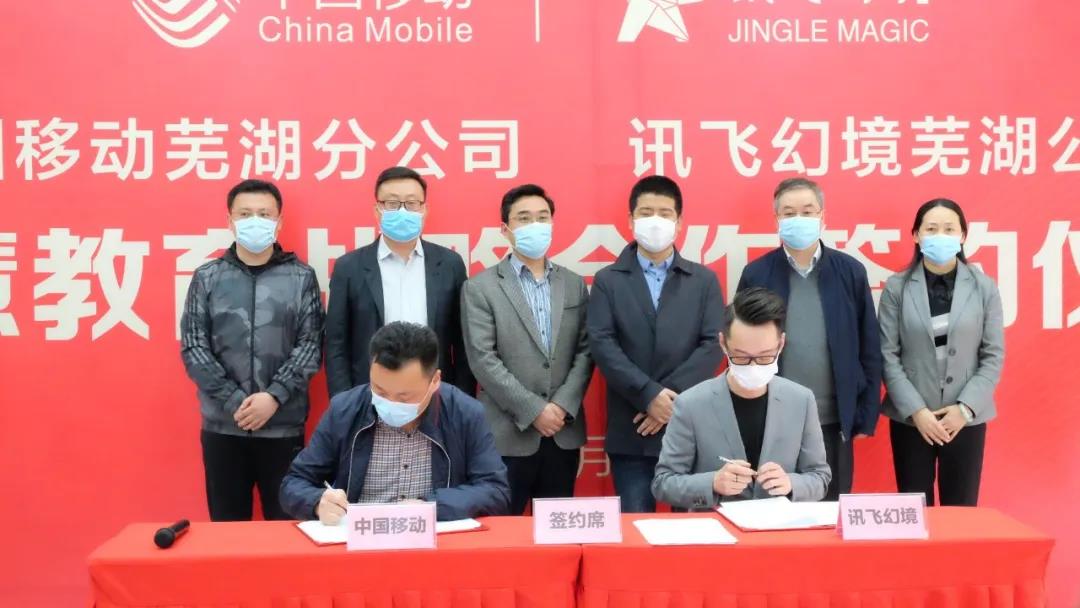 鏡湖區(qū)副區(qū)長束曉偉及政府領(lǐng)導(dǎo)、相關(guān)單位負(fù)責(zé)人,訊飛幻境政企事業(yè)部執(zhí)行總裁李寧、中國移動蕪湖分公司總經(jīng)理楊震等出席并見證簽約儀式,共同為雙方“智慧教育合作基地”揭牌。